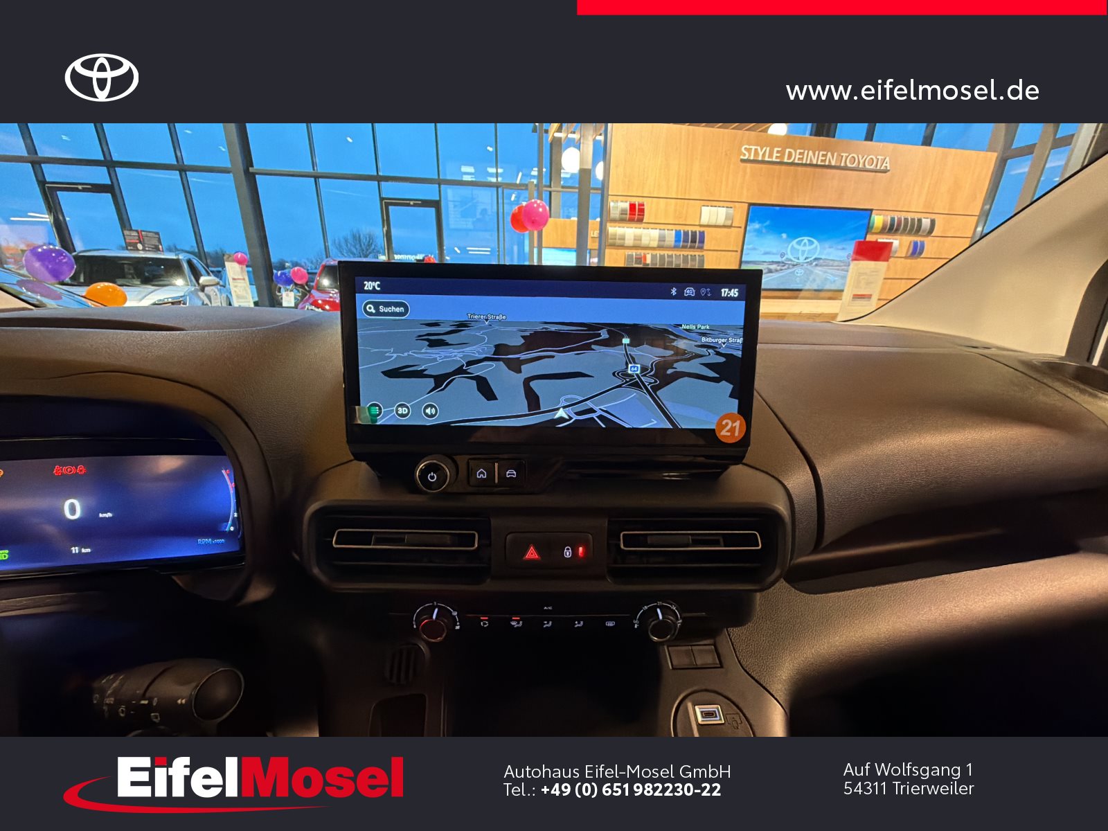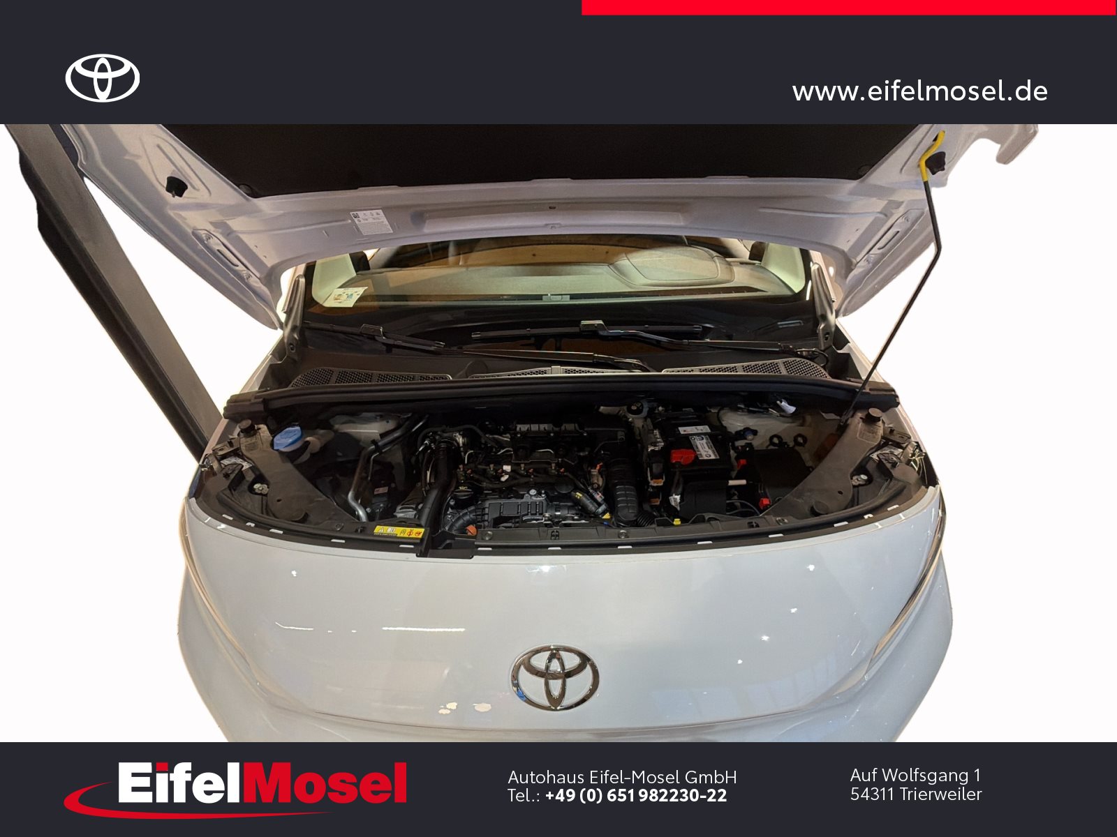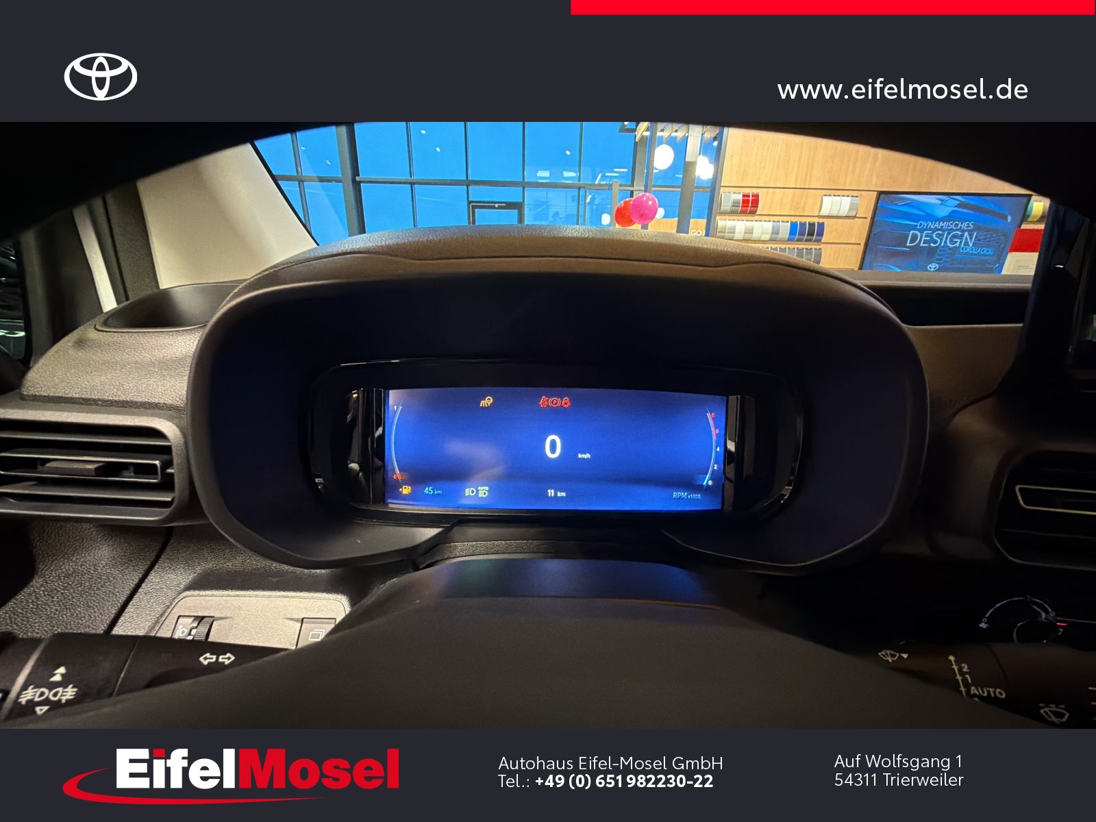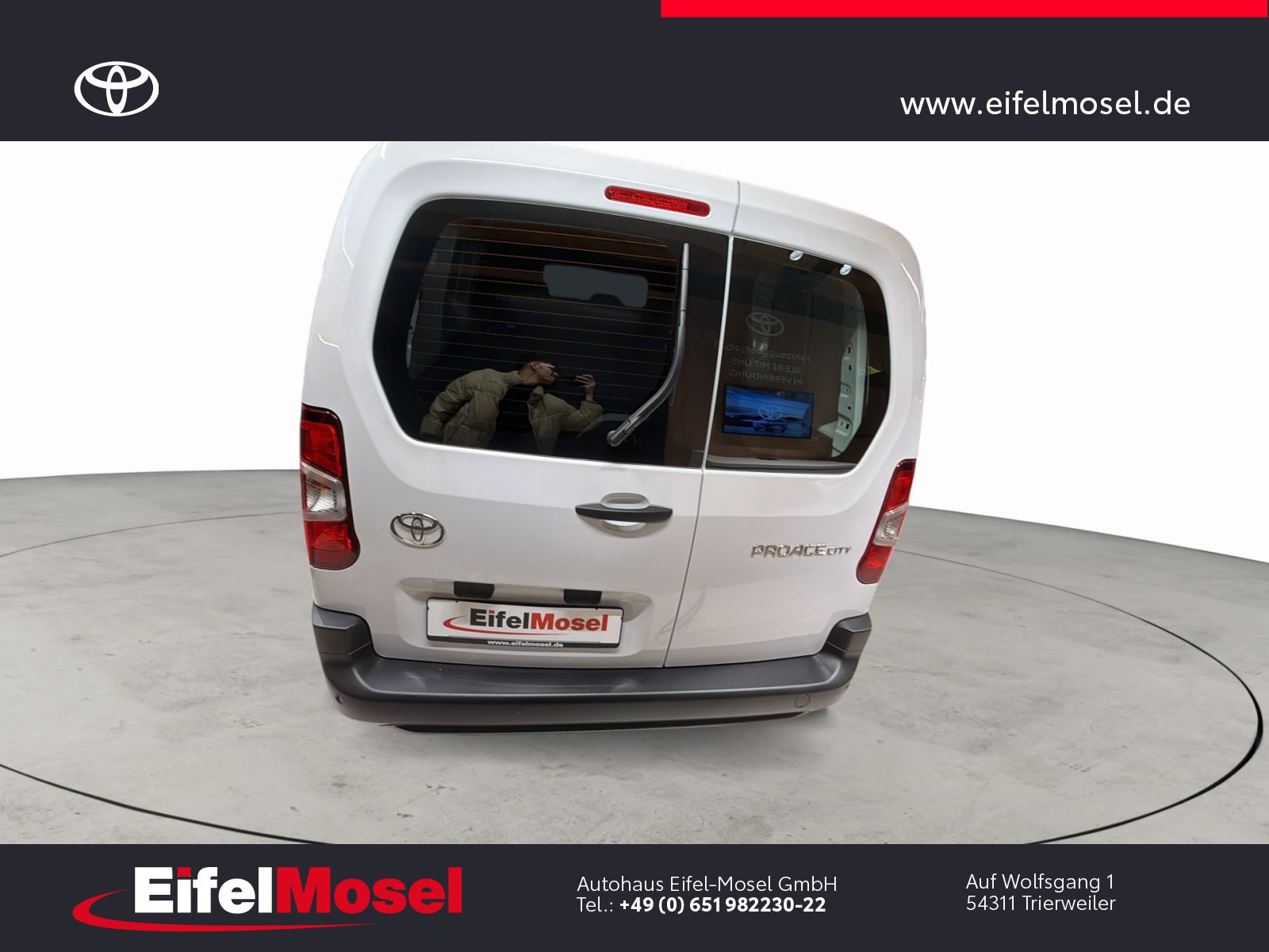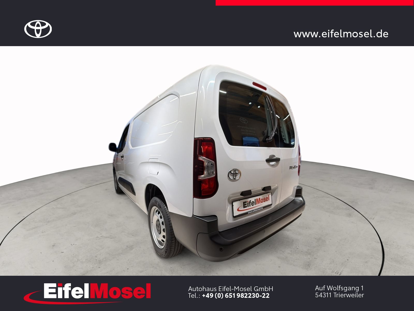 Abstandswarner, Airbag Fahrer und Beifahrer, Android Auto, Berganfahrassistent, Blendfreies Fernlicht, CarPlay, DAB Tuner, Fernlichtassistent, Geschwindigkeitsbegrenzungsanlage, Klimaanlage, LED-Scheinwerfer, LED-Tagfahrlicht, Lordose, Müdigkeitswarnsystem, Musikstreaming integriert, Navigationssystem, Notbremsassistent, Notrufsystem, Reifendruck Control / Warnung (RDC/RDW), Schiebetür rechts, Servolenkung, Sideguard, Soundsystem, Sprachsteuerung, Touchscreen, USB / Audio Interface, Zentralverriegelung, Fahrzeugnummer: 38610, , HIGHLIGHTS & PAKETE, , Comfort-Paket, , , ASSISTENZSYSTEME, , Auffahrwarnsystem (Forward Collision Warning - FCW), Geschwindigkeits-Regelanlage (Tempomat), Pre-Collision-System (PCS), Bergabfahrkontrolle (HDC / DAC), Einparkhilfe hinten, Elektr. Bremskraftverteilung, Stop&Go-System (TSGS), , , MOTOR GETRIEBE & FAHRWERK, , Anti-Blockier-System (ABS), Getriebe 6-Gang, Russpartikelfilter, Servolenkung elektrisch, Antriebsart: Frontantrieb, , , AUDIO & KOMMUNIKATION, , Audiosystem: Multimedia Toyota Pro Touch, Navigationssystem (ProTouch & Go), Smartphone-Integration x-connect (Apple CarPlay und Android Auto), DAB-Tuner (Radioempfang digital), Freisprechanlage mit Audiostummschaltung, Multimedia Display (8.0 Zoll), , , INTERIEUR, , Klimaanlage, Audiobedienung am Lenkrad, Beifahrerdoppelsitz, Fensterheber vorn elektr. mit Einklemmschutz, Komfortsitze, Lendenwirbelstütze Sitz vorn links, Seitenairbag vorn, Sitz vorn links höhenverstellbar, USB-Schnittstelle, Laderaumtrennwand, , , LICHT & SICHT, , Fernlichtassistent (Abblendautomatik Fahrlicht - AHB), Bi-LED-Scheinwerfer, Nebelscheinwerfer, Tagfahrlicht, , , RÄDER, , Reifendruck-Kontrollsystem, , , TECHNIK & SICHERHEIT, , Berganfahrkontrolle (HAC), Bremsassistent, Geschwindigkeits-Begrenzeranlage, Airbag Fahrer-/Beifahrerseite, Autonome Notbremsfunktion (AEB), Elektron. Stabilitäts-Programm mit Antriebs-Schlupfregelung (VSC mit TRC), Parkbremse elektrisch (EPB), Sicherheitssystem Toyota Connect mit automatischem Notruf (eCall), Toyota Smart Cargo, Zentralverriegelung mit Fernbedienung, , , EXTERIEUR, , Aussenspiegel elektr. verstell- und heizbar, Aussenspiegel elektr. anklappbar, Aussenspiegel schwarz lackiert, Heckflügeltüren ohne Verglasung, Schiebetür Fahrgast-/Laderaum rechts, Seitenschutzleisten, , , SONSTIGE AUSSTATTUNGEN, , Karosserie/Aufbau: Kasten, Modellpflege, Nutzlast erhöht, Schadstoffarm nach Abgasnorm Euro 6d, Steckdose (12V-Anschluss) Koffer-/Laderaum, , , TOYOTA RELAX Garantie², , Nach jeder Inspektion bis zu einem Fahrzeugalter von 15 Jahren , , ²Es gelten die Toyota Relax Garantiebedingungen der Toyota Motor Europe S.A./N.V., Avenue du Bourget 60, B-1140 Brüssel, Belgien. Die Toyota Relax Garantie gilt ausschließlich für Toyota Fahrzeuge nach jeder Inspektion bei einem Toyota Partner bis zu einem Fahrzeugalter von 15 Jahren oder einer Laufleistung von 250.000 km. Die Toyota Relax Garantielaufzeit beträgt 12 oder 24 Monate in Abhängigkeit des für das Fahrzeug vorgesehenen Inspektionsintervalls. Weitere Details sowie die Garantiebedingungen erhalten Sie unter http://www.toyota.de/relax., , , , Eingabefehler, Irrtümer und Zwischenverkauf vorbehalten, Die gemachten Angaben in Anzeigen, Internet, Preisschildern und Bildern sind unverbindliche Beschreibungen und dienen nicht als zugesicherte Eigenschaften. Der Verkäufer übernimmt keine Haftung für Tipp- und Datenübermittlungsfehler. Aufgeführte Ausstattungen sind ggfs. gesondert zu prüfen. Alle Angaben in den Inseraten sind unverbindlich und ohne Gewähr. Wir freuen uns auf Ihren Besuch. Bei Interesse wenden Sie sich bitte an Herrn Stahl oder Herrn Pauls. Tel.: 0651 - 982230-0